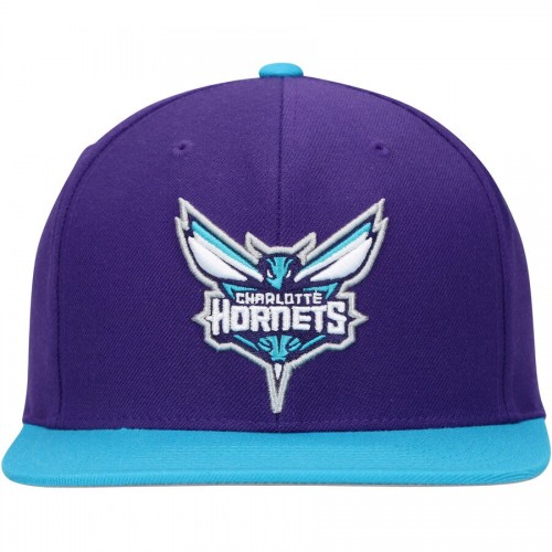 Mens NBA Charlotte Hornets 2 Tone Purple and Teal Mitchell And Ness Basic Core Snapback Hat