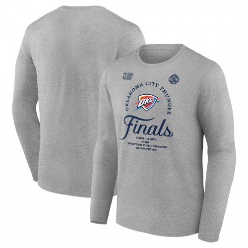 Men’s Oklahoma City Thunder Fanatics Heather Gray 2025 Western Conference Champions Locker Room Long Sleeve T-Shirt