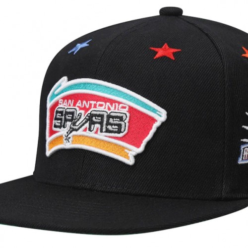 logo Hardwood Classics e Logo Mitchell and Ness Ricamati Su Etichetta Cucita Sul Fondo