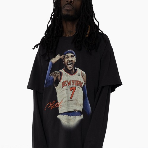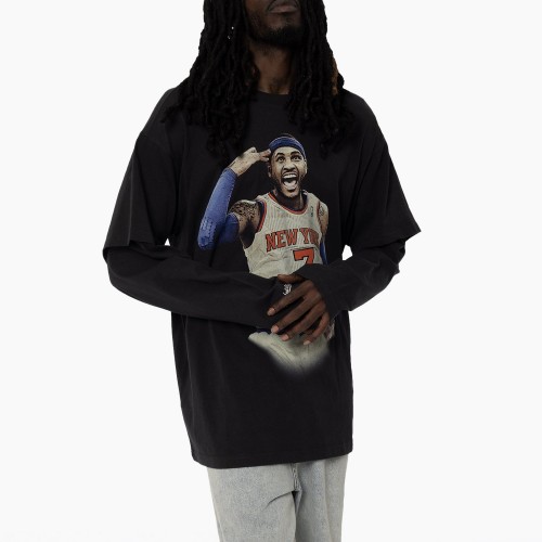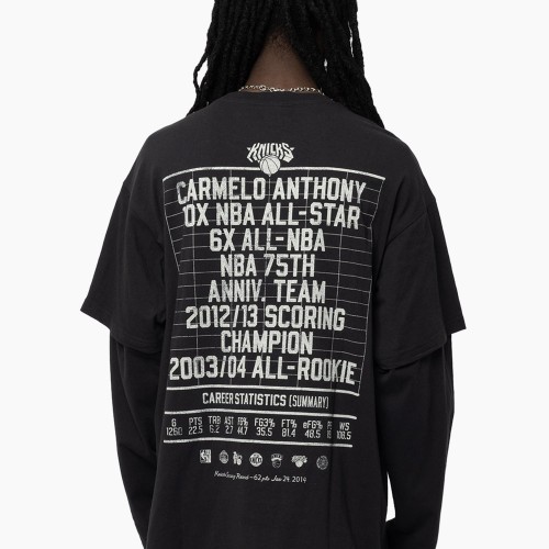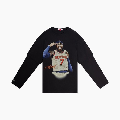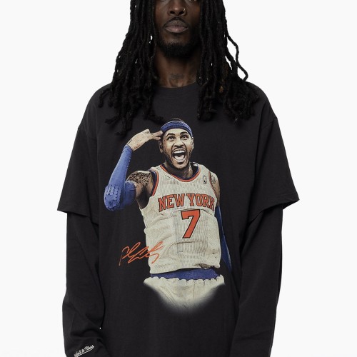 Channel a true ‘New York State Of Mind’ with this Carmelo Anthony layered tee. Designed with a tee-over-longsleeve look, it features custom digital graphics front and back that pay tribute to Melo’s legacy. Finished with an embroidered Mitchell & Ness logo on the sleeve, it’s a standout piece for Knicks fans. The New York Knickerbockers, more commonly known as the Knicks, were established in 1946 and are one of the two NBA teams located in NYC. The team name comes from the 17th century when Dutch Settlers wore pants rolled up just below the knee called “Knickerbockers.”