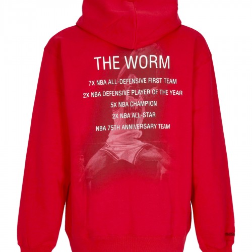 Felpa Cappuccio Uomo Nba Premium Fleece Vintage Logo Hoodie Dennis Rodman Chibul Scarlet