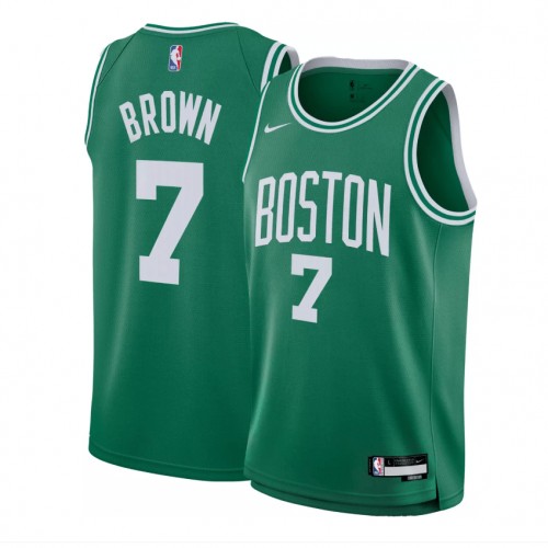 Have your little ballers rep their squad and cheer on their favourite star with the Boston Celtics Jaylen Brown #7 2023-2024 Icon Edition Swingman Youth Nike NBA Green Swingman Jersey, which features sweat-wicking double-knit fabric that is lightweight yet durable – designed specifically to help keep the little ballers cool, heat applied twill name and numbers with no stitch as well as design details that demonstrate your love for the game!