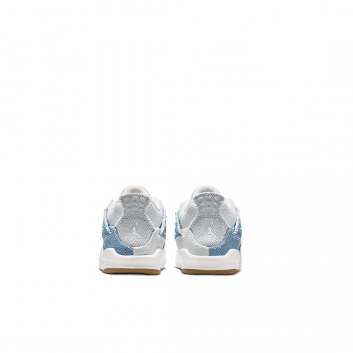 Denim and gold. We’re celebrating two iconic wardrobe staples with this special Jordan 4 Retro. This textile takedown puts a fresh spin on a classic, giving your kiddo the perfect kicks to finish any ‘fit.
