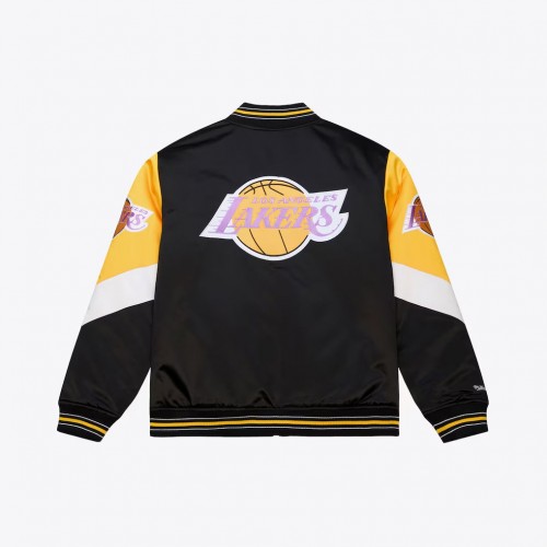 Los Angeles Lakers Black Hardwood Classics Throwback Heavyweight Satin Full-Zip Jacket