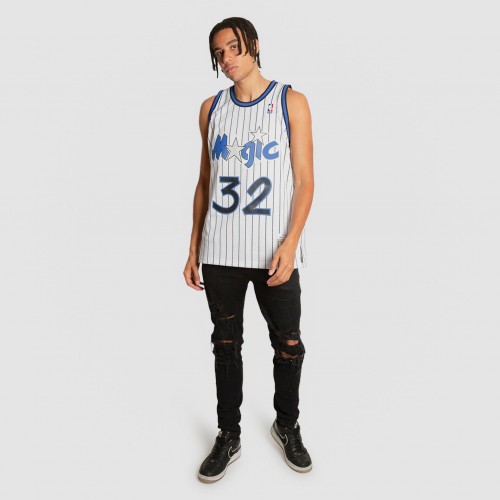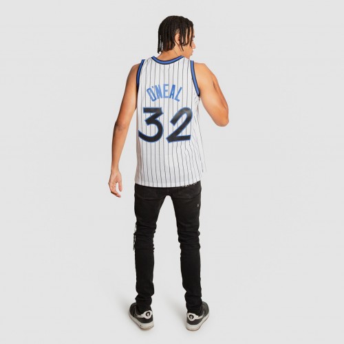 Inspired by the jerseys worn by the legends of the NBA, this NBA Hardwood Classic White Pinstripe Swingman jersey is constructed to resemble the way Shaquille O’Neal wore his home white jersey during the 1993-1994 season with the Orlando Magic. Whether it’s playing an evening pickup game or wearing to your favourite team’s next matchup, this jersey is crafted with a wearable everyday fit, featuring screen-printed twill embellishments and a mesh body for breathability throughout activity. This jersey is sized for men; women may need to size down accordingly based on length and fit.