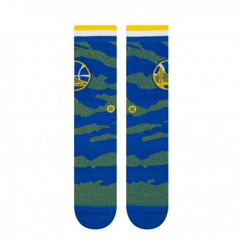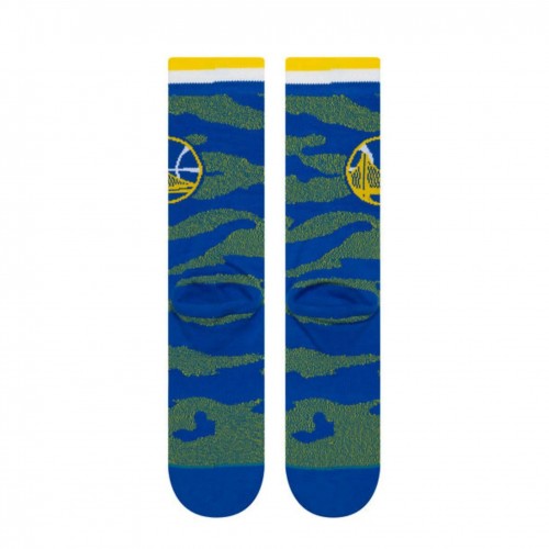 Back the Bay with the Stance Casual NBA Golden State Warriors Camo Melange Crew Socks, featuring a blue camo-inspired knit with team-colored detailing. These casual crew socks combine a soft, cushioned feel with reliable support for everyday wear.