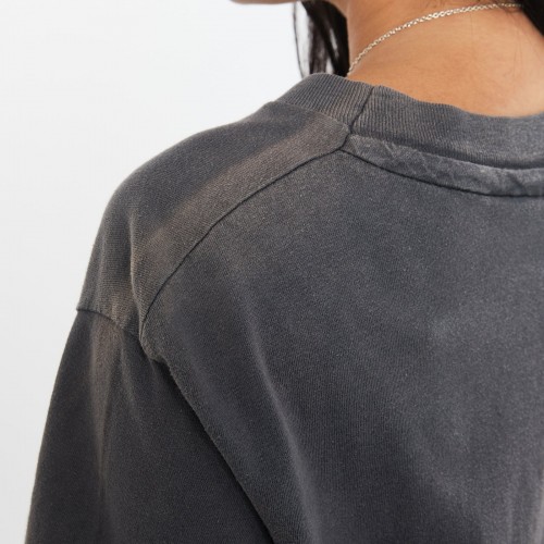 A few bleach marks above left side hem and fading on left shoulder