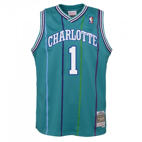 Get ready to buzz with this Youth Charlotte Hornets Muggsy Bogues Swingman Jersey by Mitchell & Ness, featuring the iconic teal and purple colorway from the ’92-’93 season. Support your favorite team and stand out in style. Don’t be a benchwarmer, snag this classic jersey today!